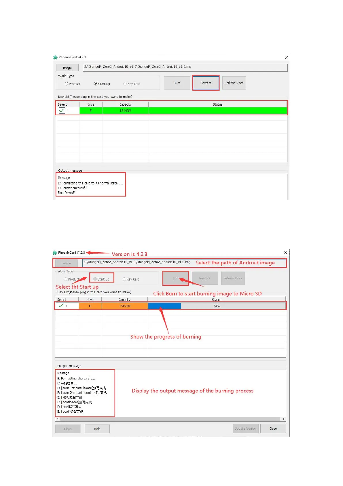 8) Then start to write the Android OS to MicroSD card