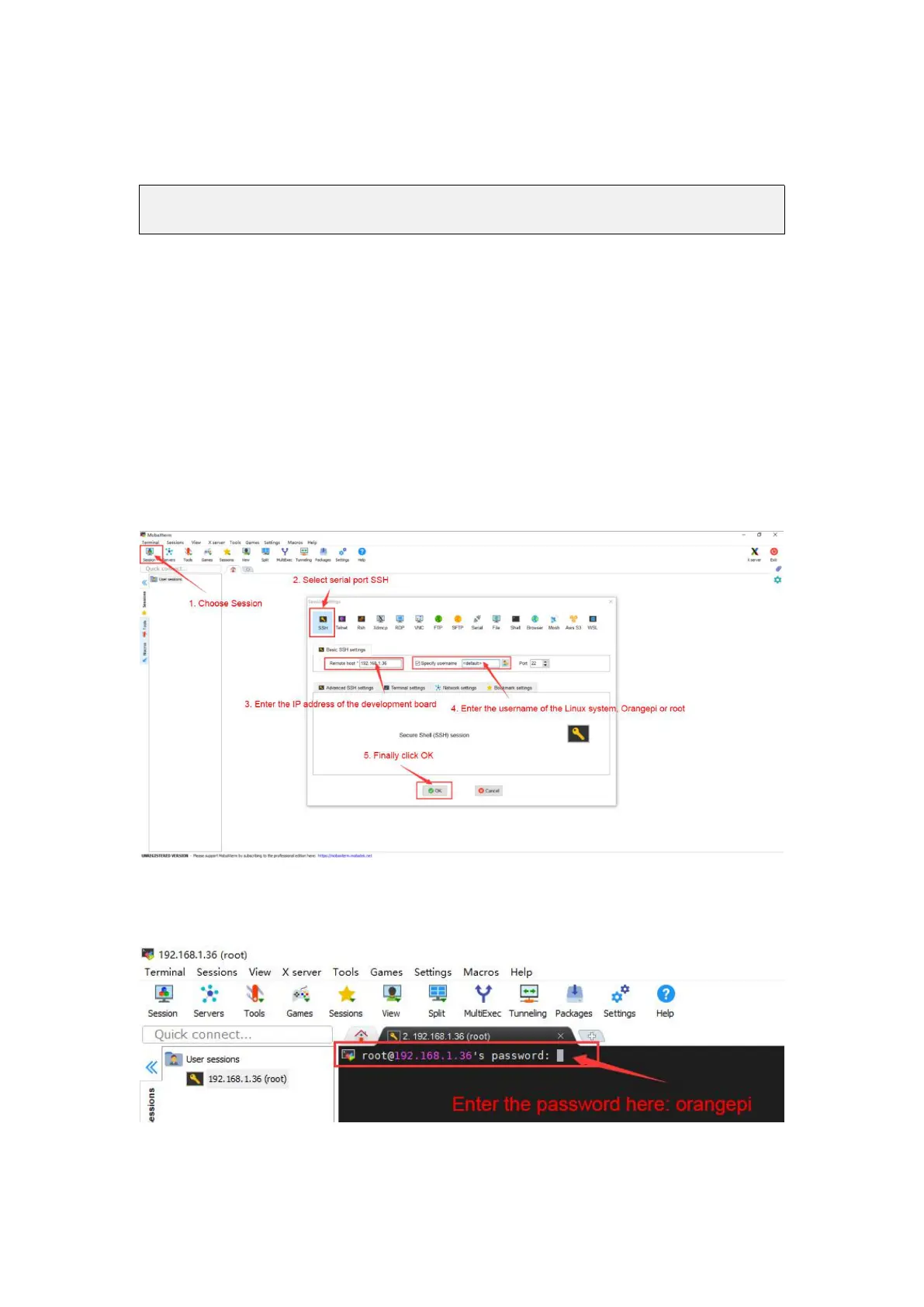 d. Then enter the username root or orangepi of the Linux OS in Specify username