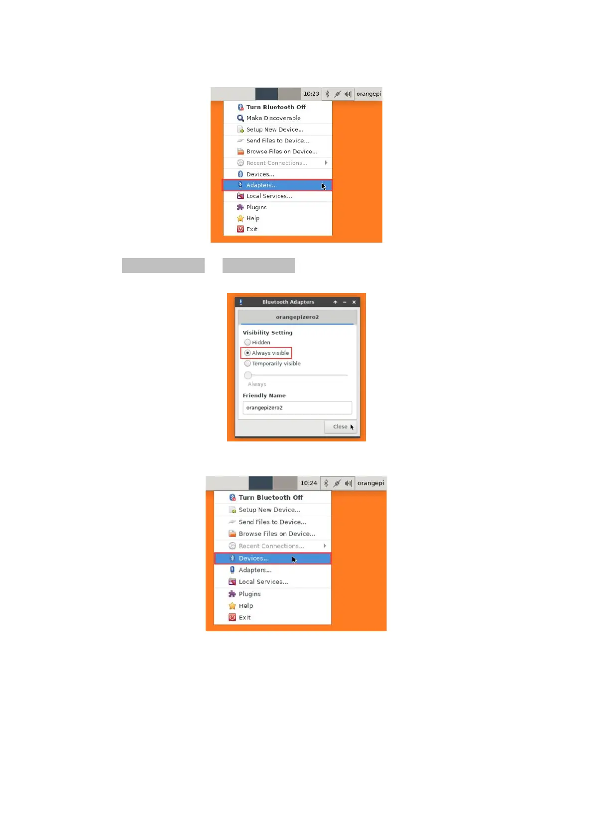 3) Set Visibility Setting to Always visible in the Bluetooth adapter setting interface,
