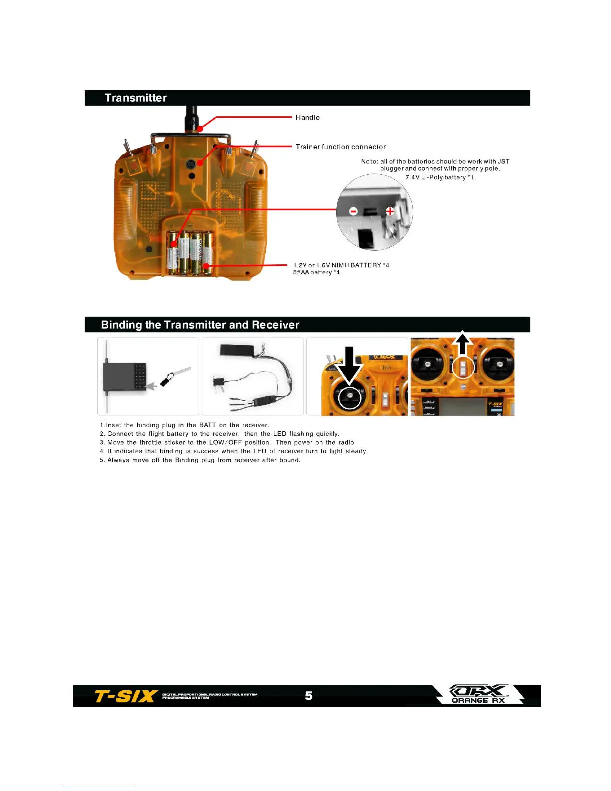 Orange RX T-SIX - Core Transmitter Operations; Binding Transmitter and Receiver
