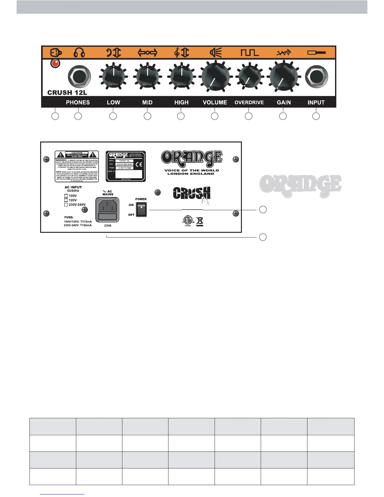 1- INPUT : Use this jack to connect your guitar to the amplifier by means of a shielded instrument cable.