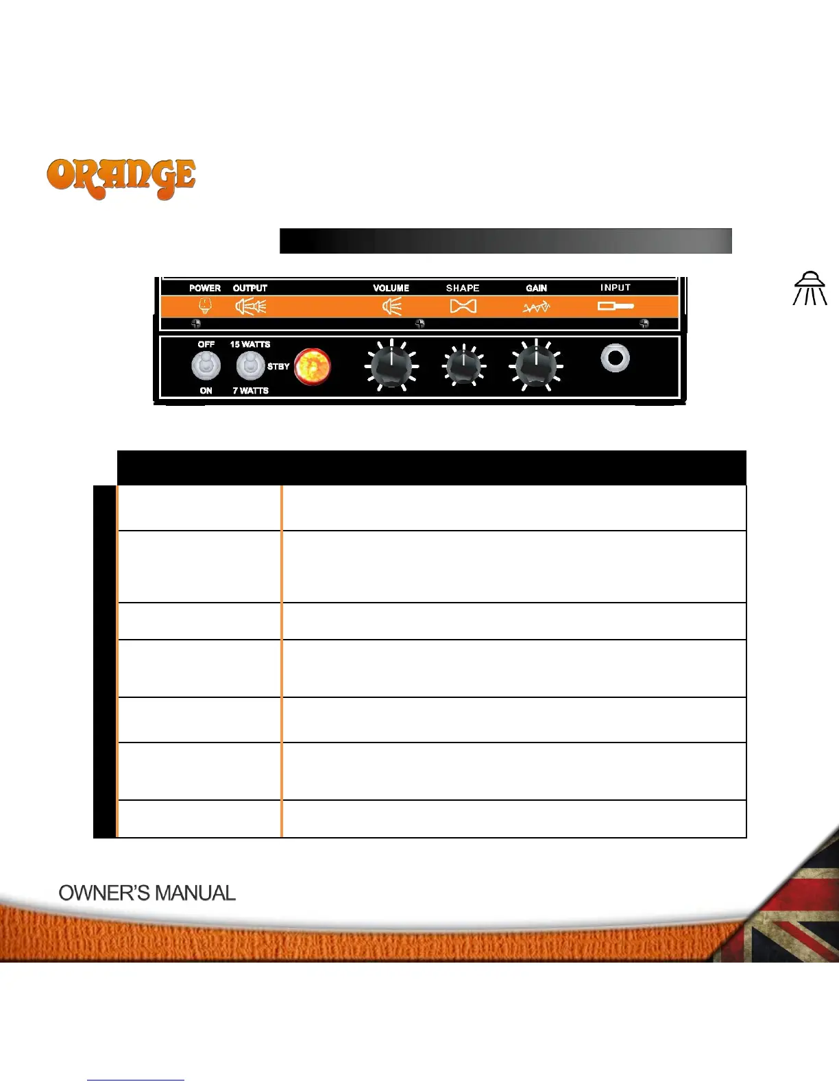 The volume control adjusts the output volume. High levels of volume will heavily overdrive the