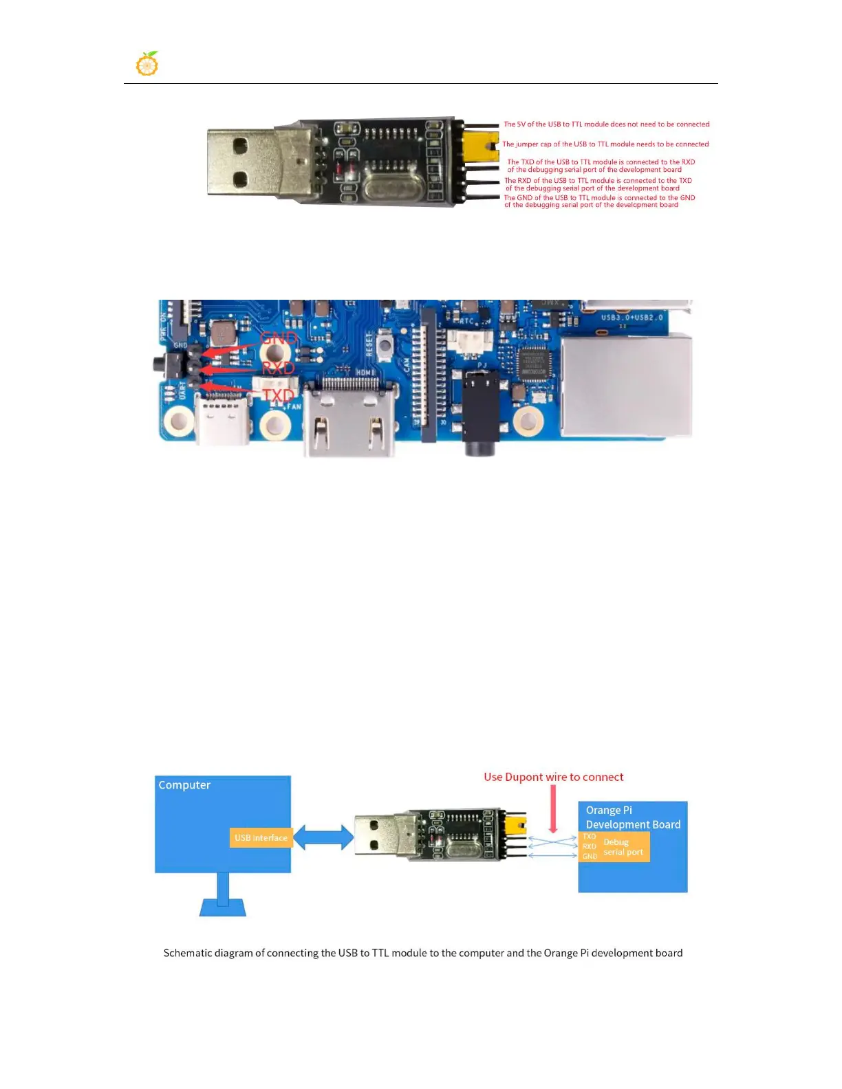 3) The GND, TXD and RXD pins of the USB to TTL module need to be connected to