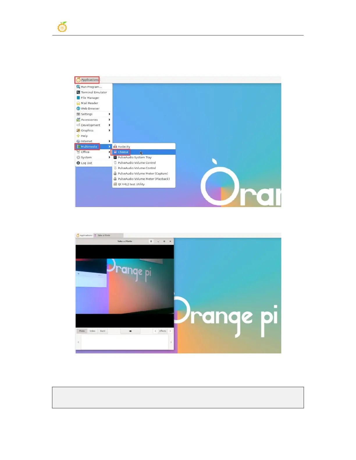 3) In the desktop system, Cheese can be used to directly open the USB camera. The