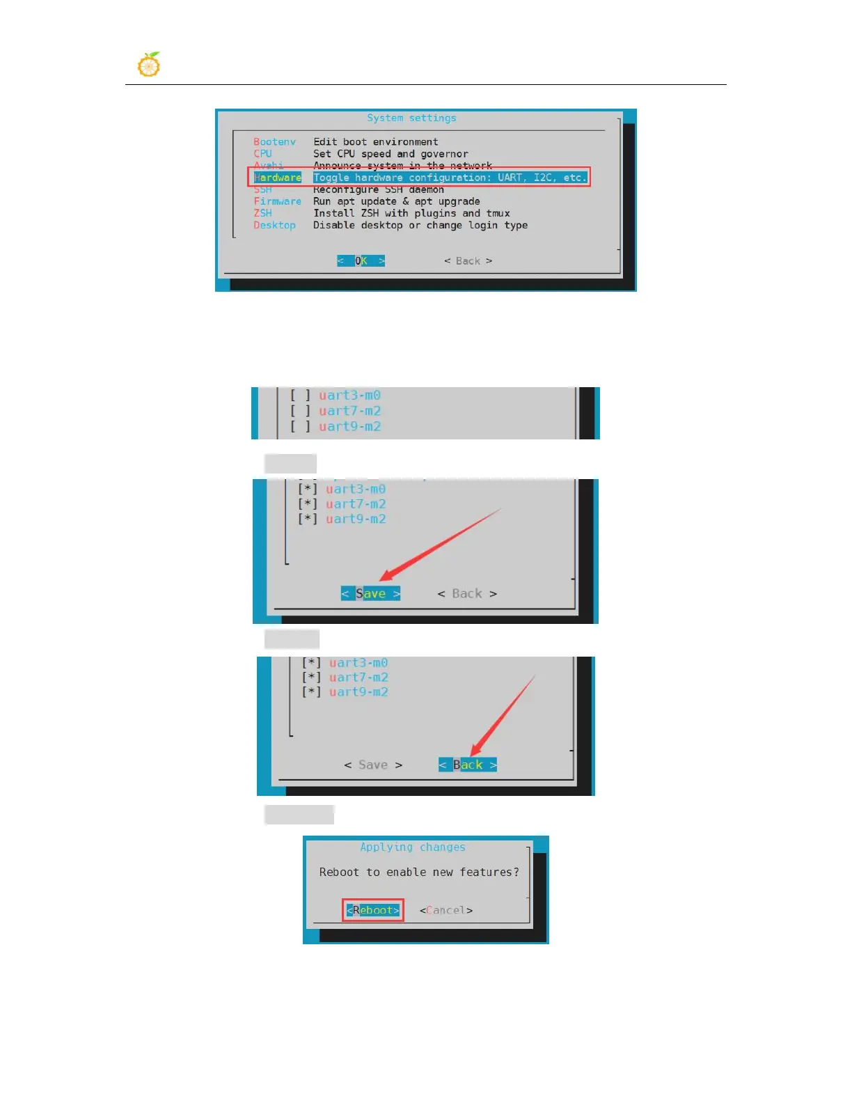 g. Then select <Reboot> to restart the system to make the configuration take effect
