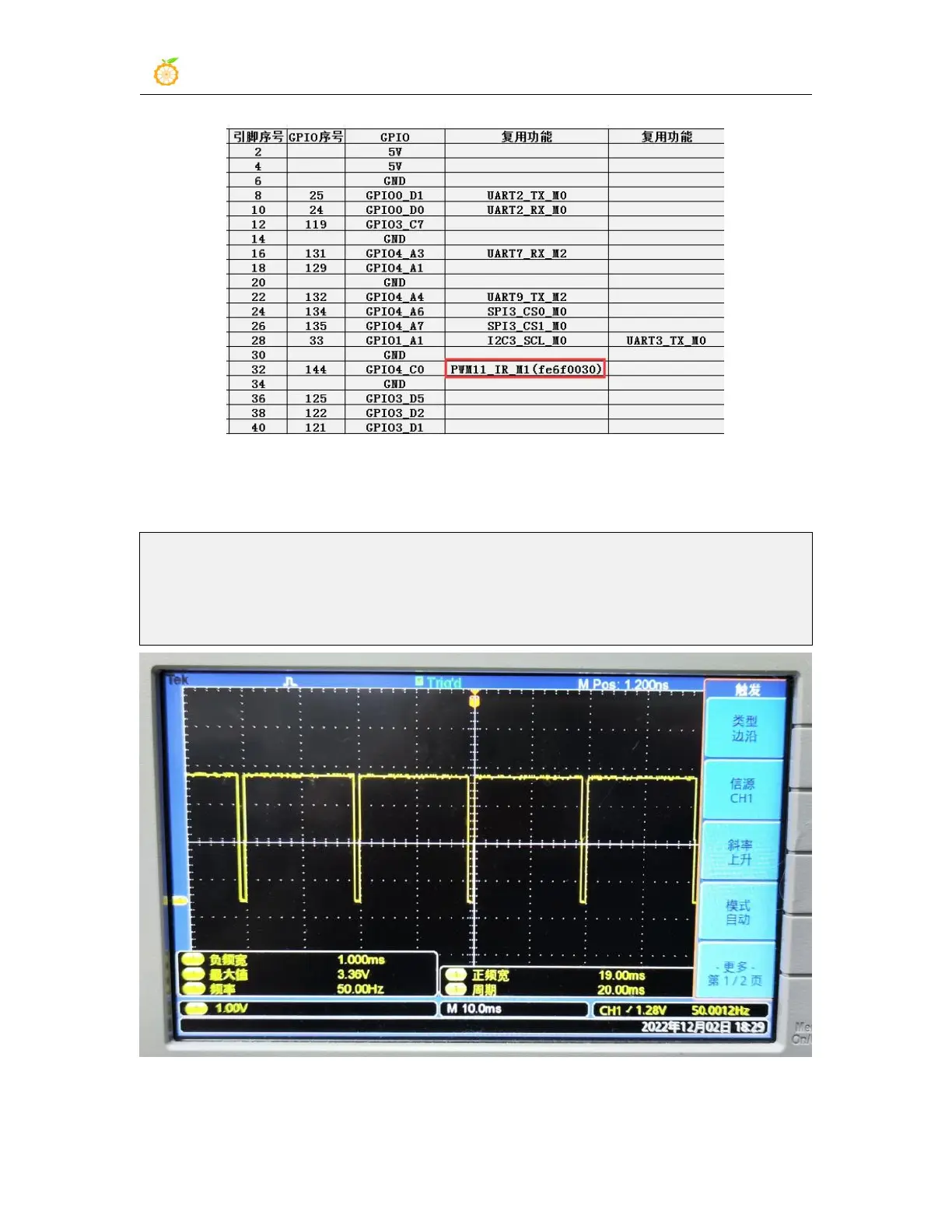 root@orangepi:~# echo 1 > /sys/class/pwm/pwmchip1/pwm0/enable