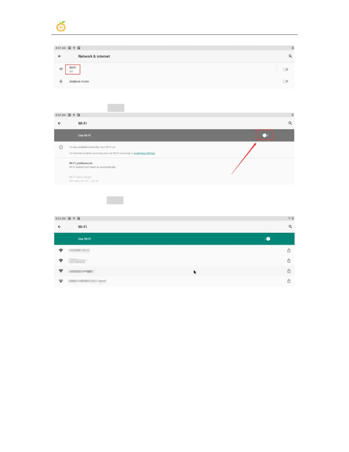 4) Then turn on the Wi-Fi switch