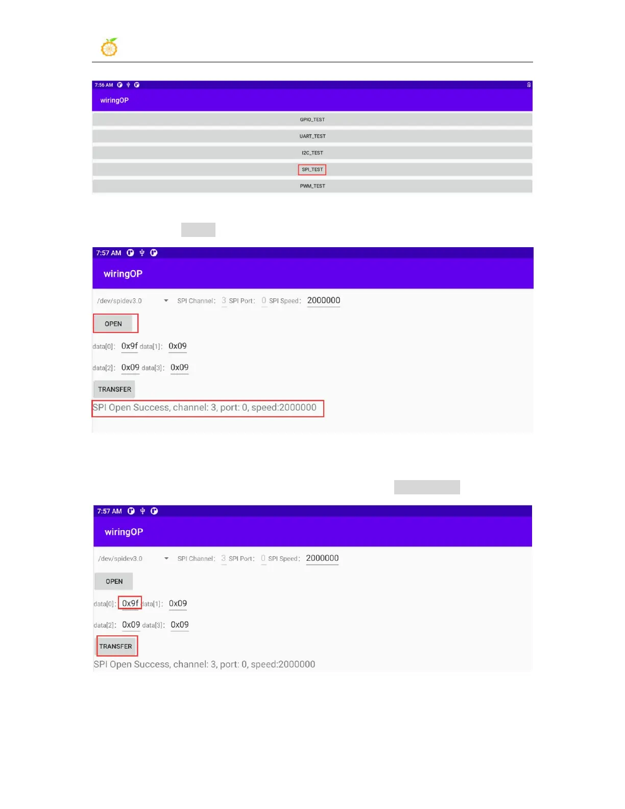 5) Then click the OPEN button to initialize the SPI