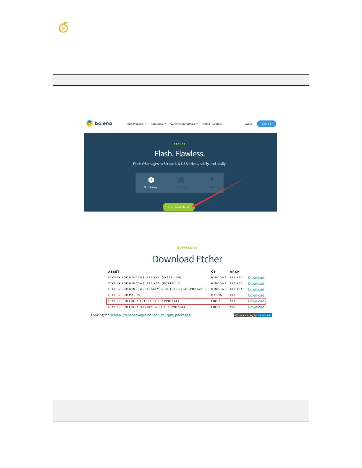 4) After entering the balenaEtcher download page, click the green download button to