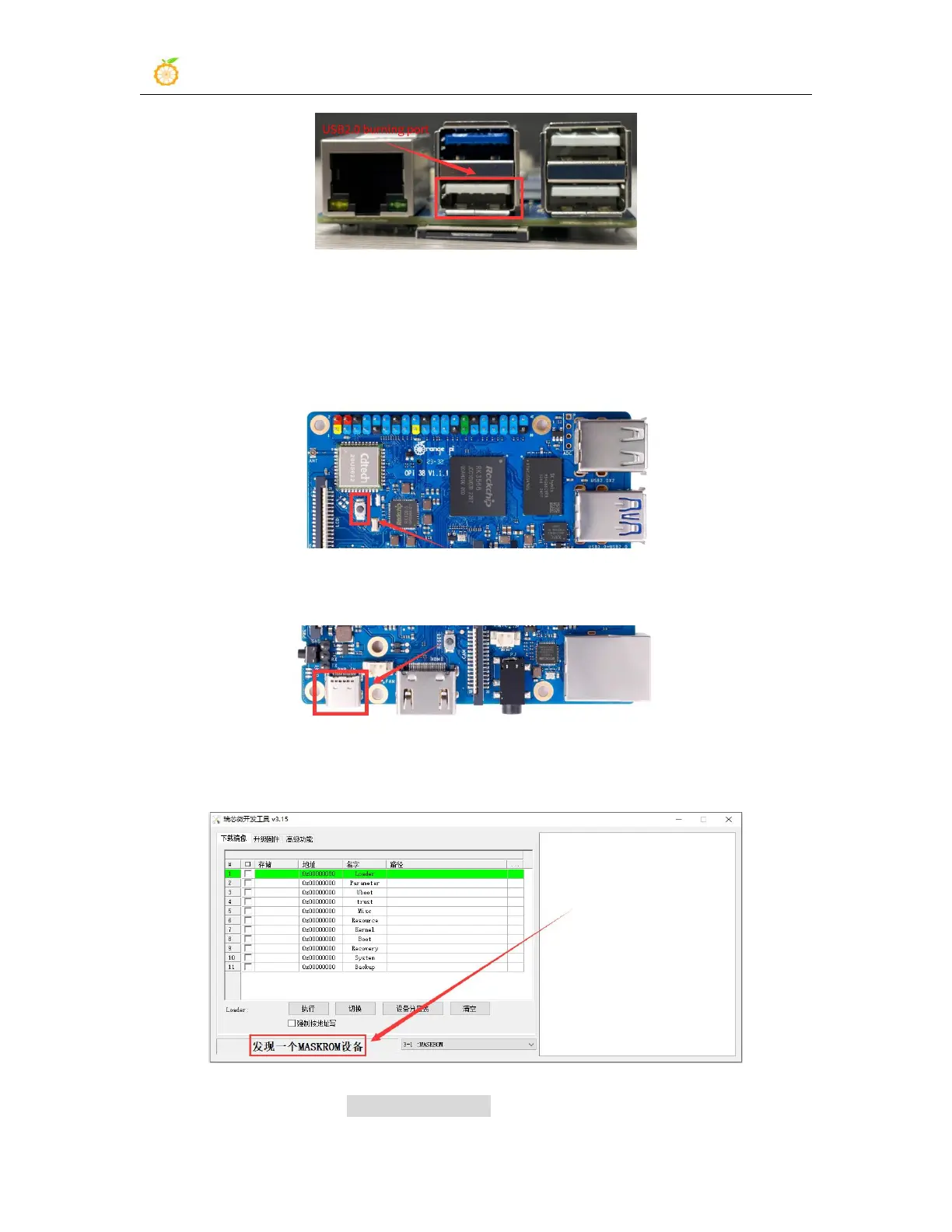 MASKROM mode at this time, and the interface of the burning tool will prompt