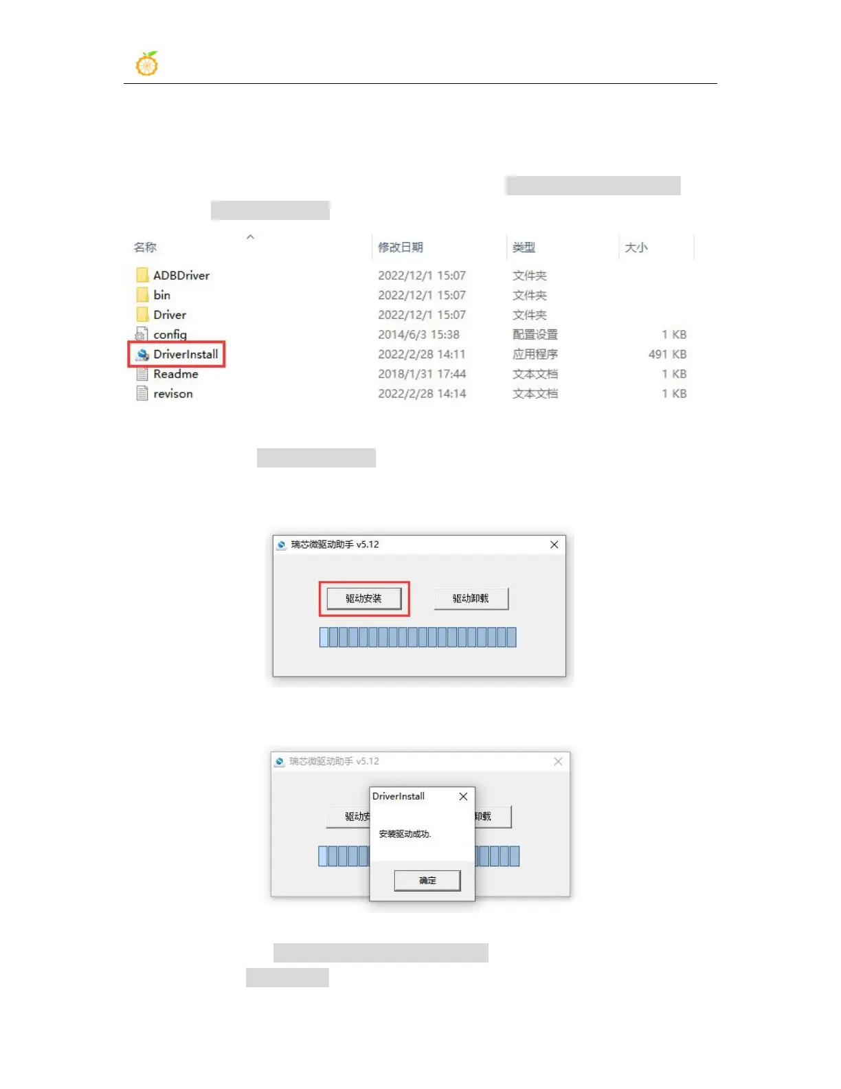 7) After opening DriverInstall.exe, the steps to install the Rockchip driver are as