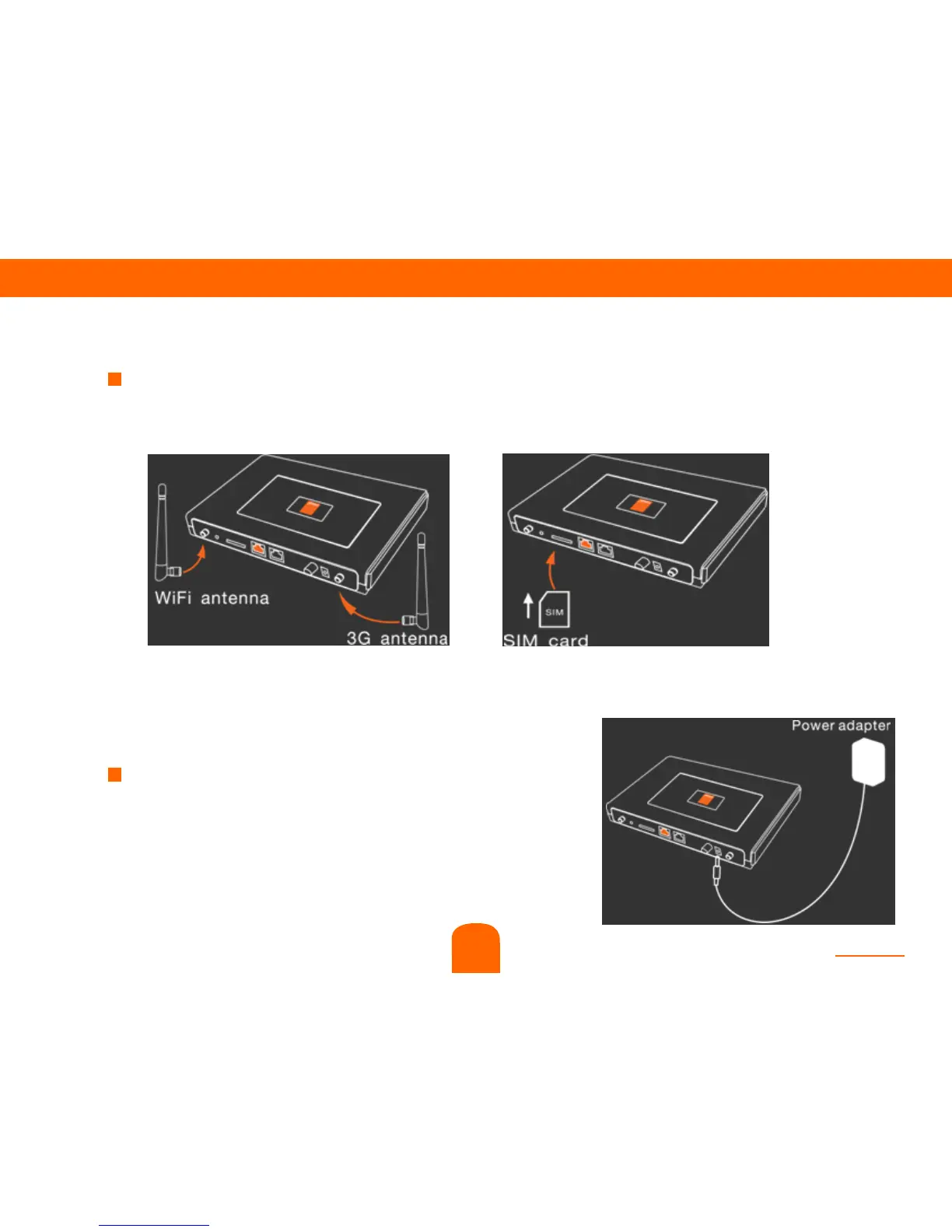 Connect 3G and Wi-Fi antennas, then insert SIM card into the SIM slot
