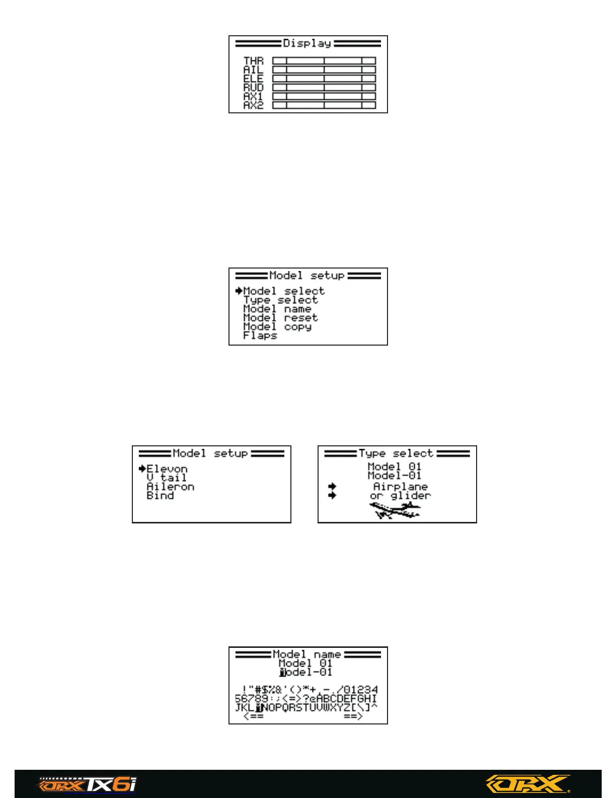 Change between airplane/glider and different helicopter types and multicopter.