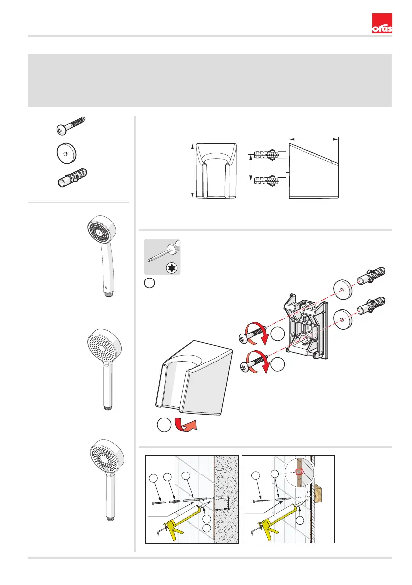 Oras Apollo - Installation: Model 251050 and Shower Heads; Installation Parts (Model 251050); Shower Head Installation Guide