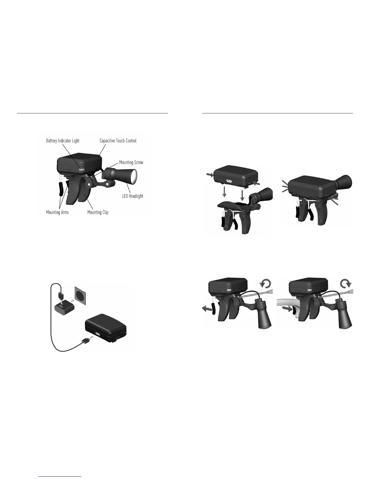 Batteripakken holdes på plass på monteringsklemmen ved hjelp av låseflikene på hver side av batteripakken. Trykk ned