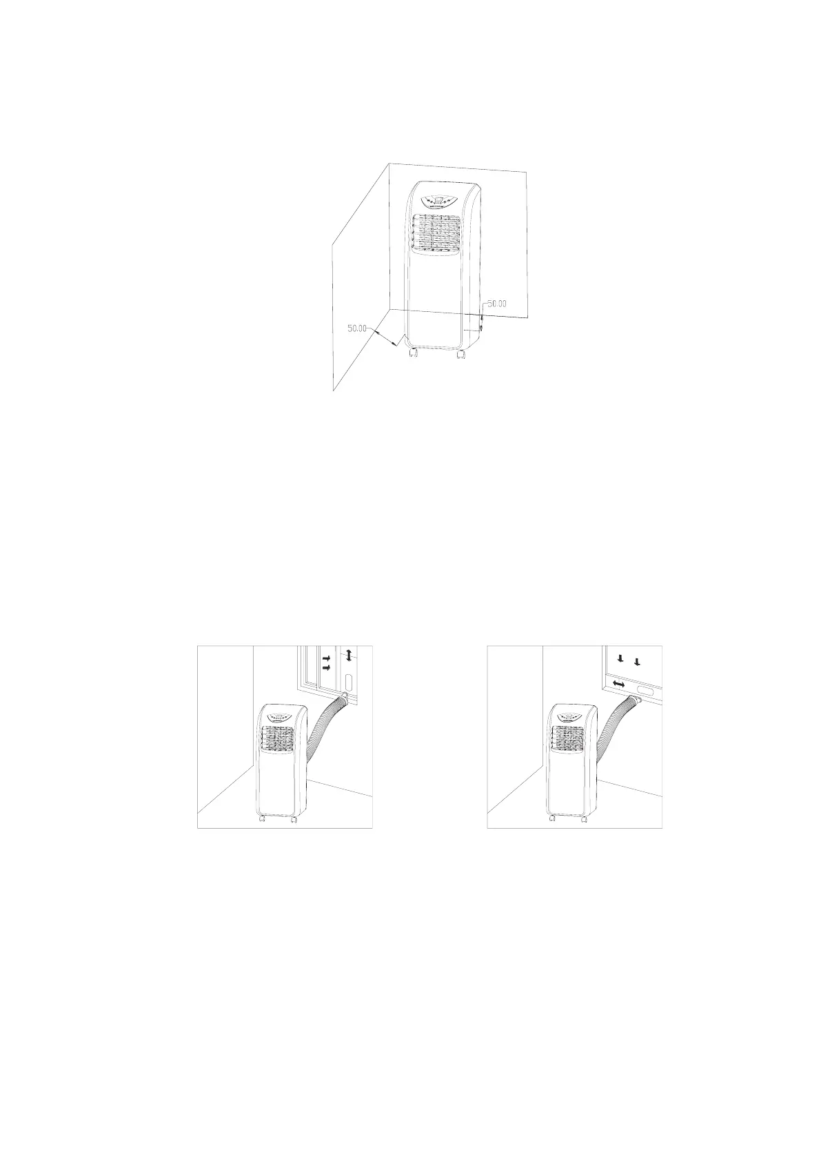 1 Move the unit with the hose attached to the window so that it is at least 50