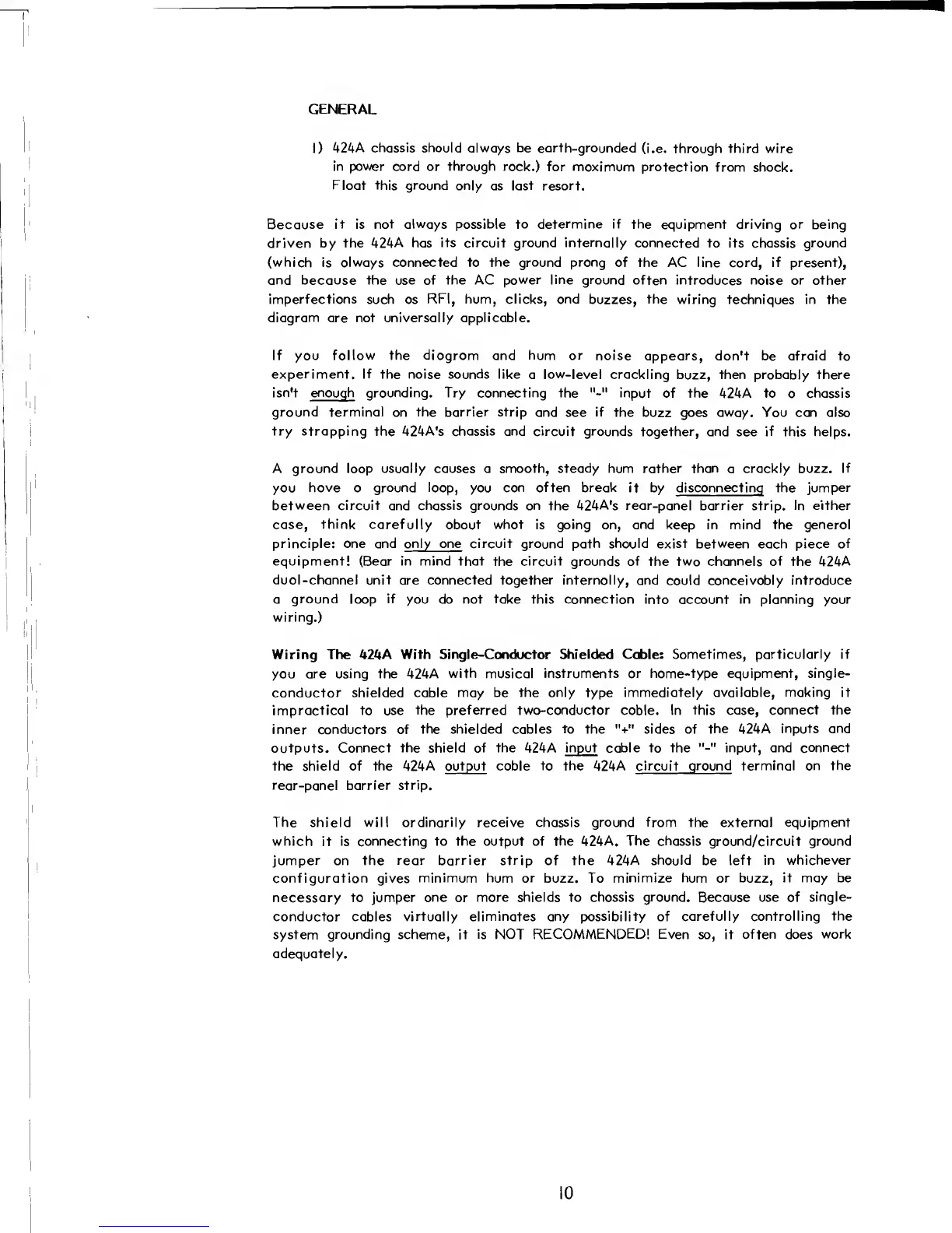 try strapping the 424A's chassis and circuit grounds