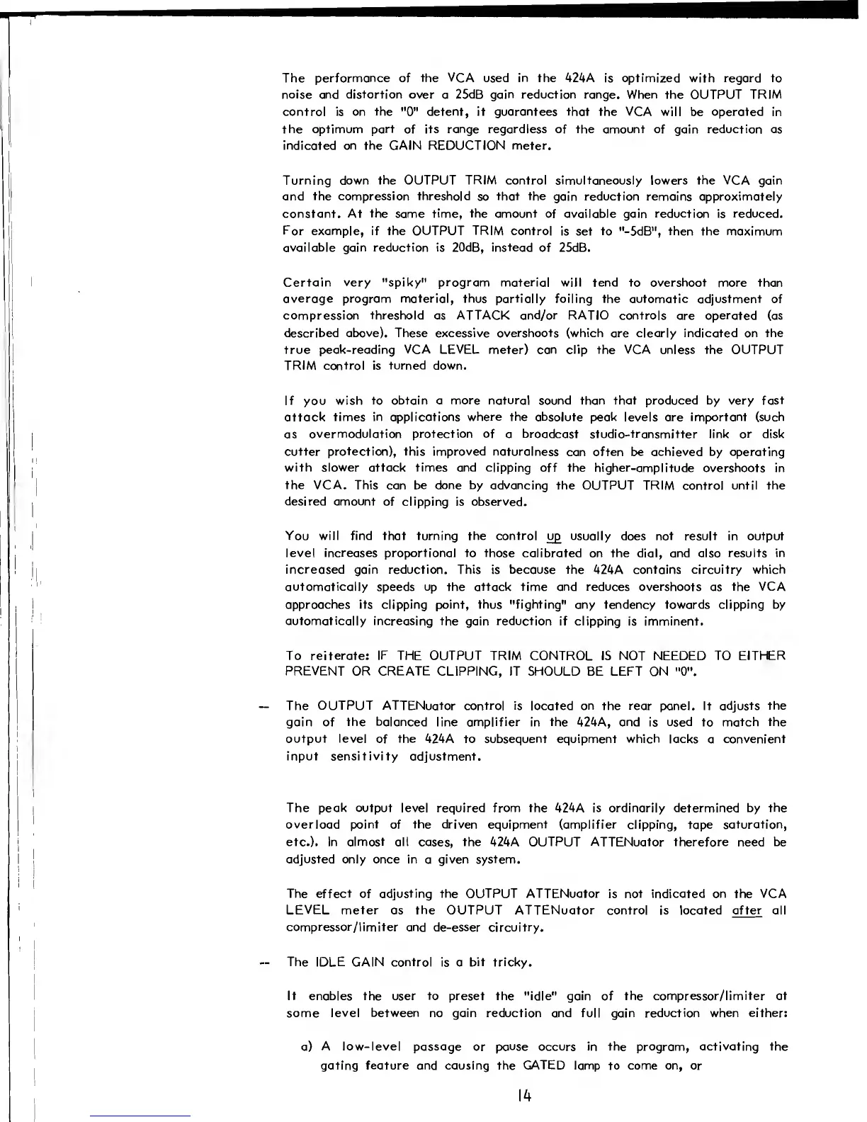 Turning down the OUTPUT TRIM control simultaneously lowers the VCA gain