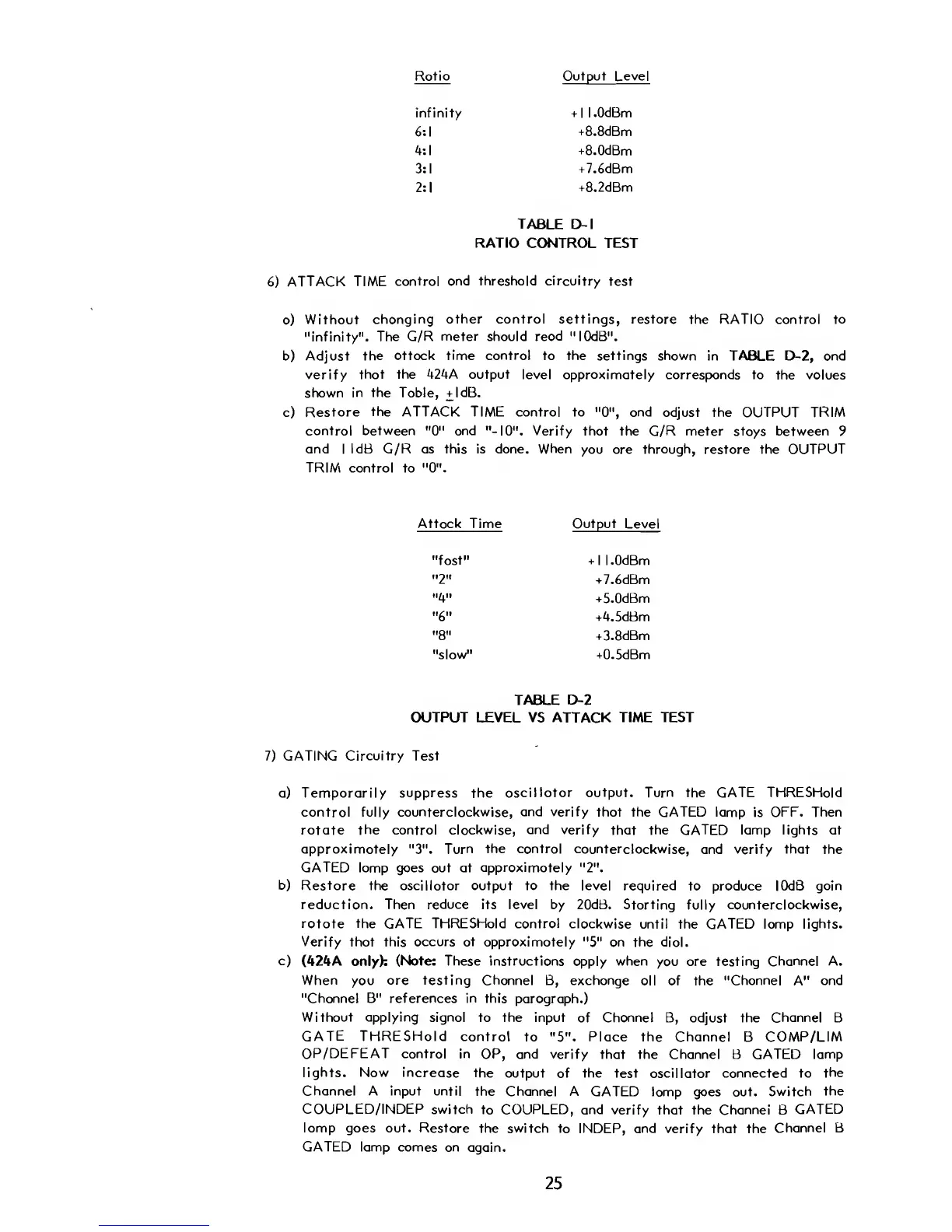 OUTPUT LEVEL VS ATTACK TIME TEST