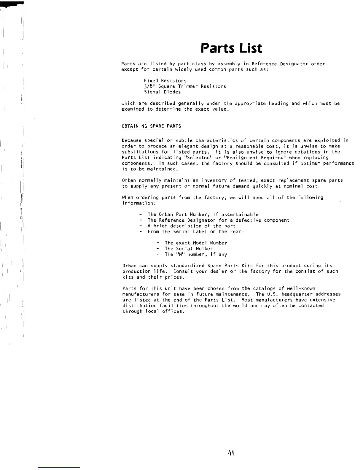 of the Parts List. Most manufacturers have