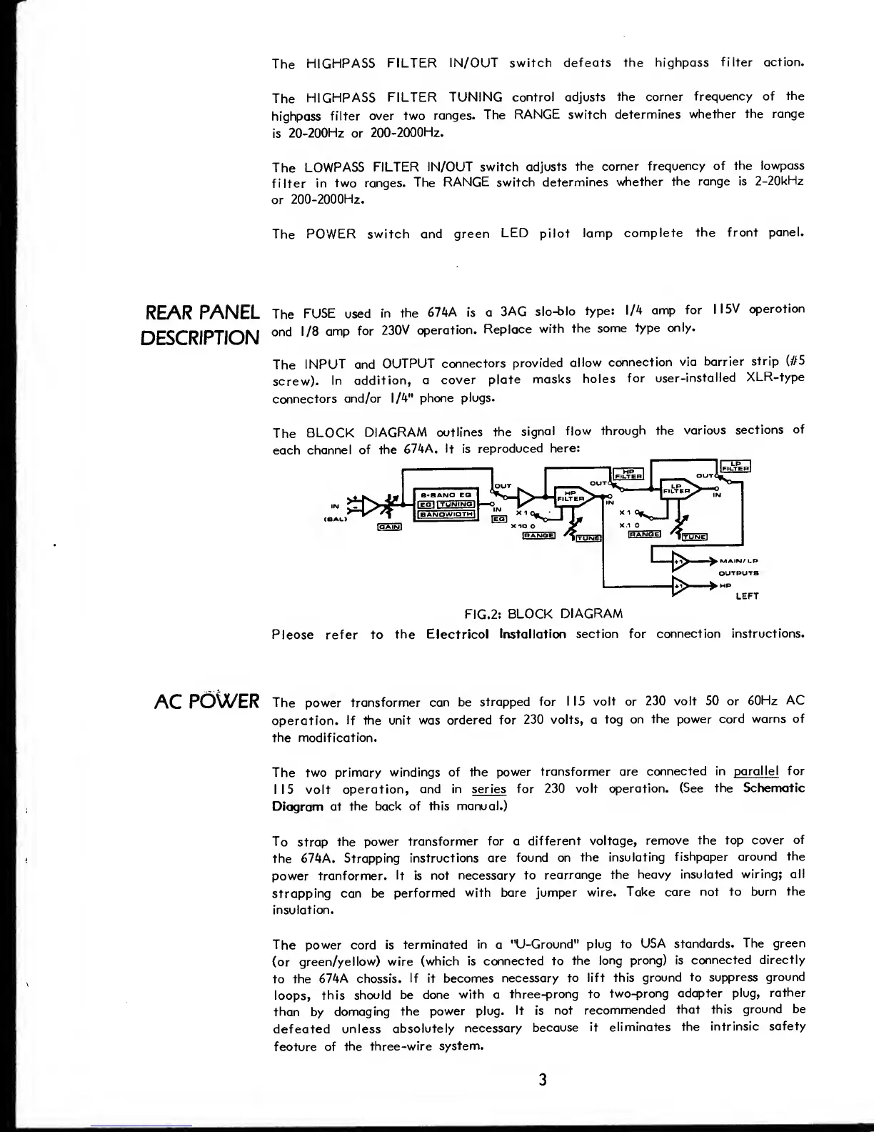 Orban 674A - Rear Panel Connections; AC Power Setup