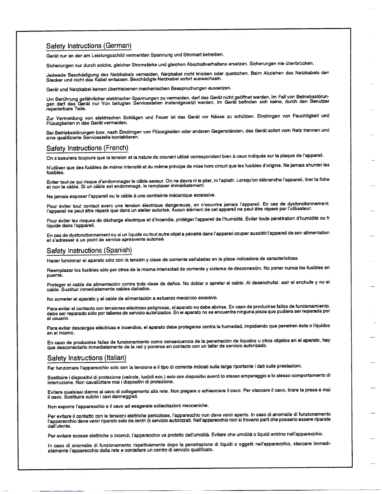 Orban 787A - Safety Instructions in Multiple Languages; German Safety Guidelines; French Safety Guidelines; Spanish Safety Guidelines