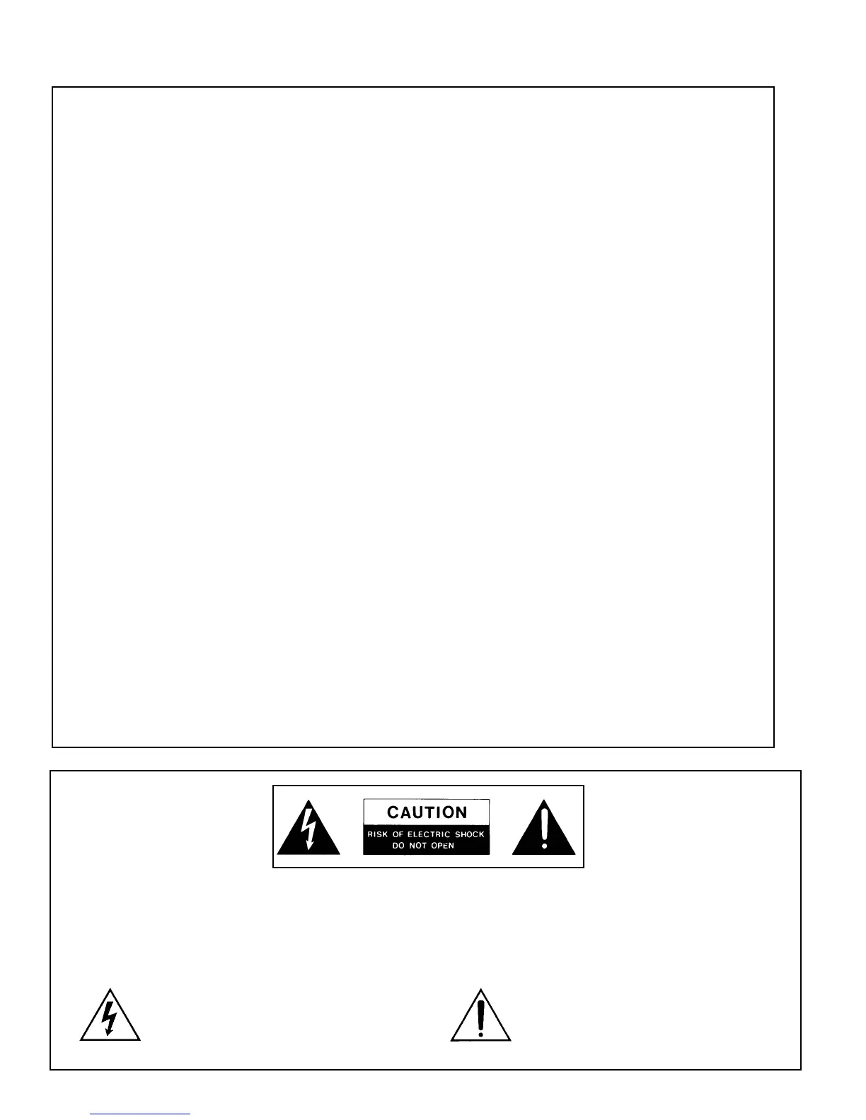 CAUTION: TO REDUCE THE RISK OF ELECTRICAL SHOCK, DO NOT REMOVE COVER (OR BACK).