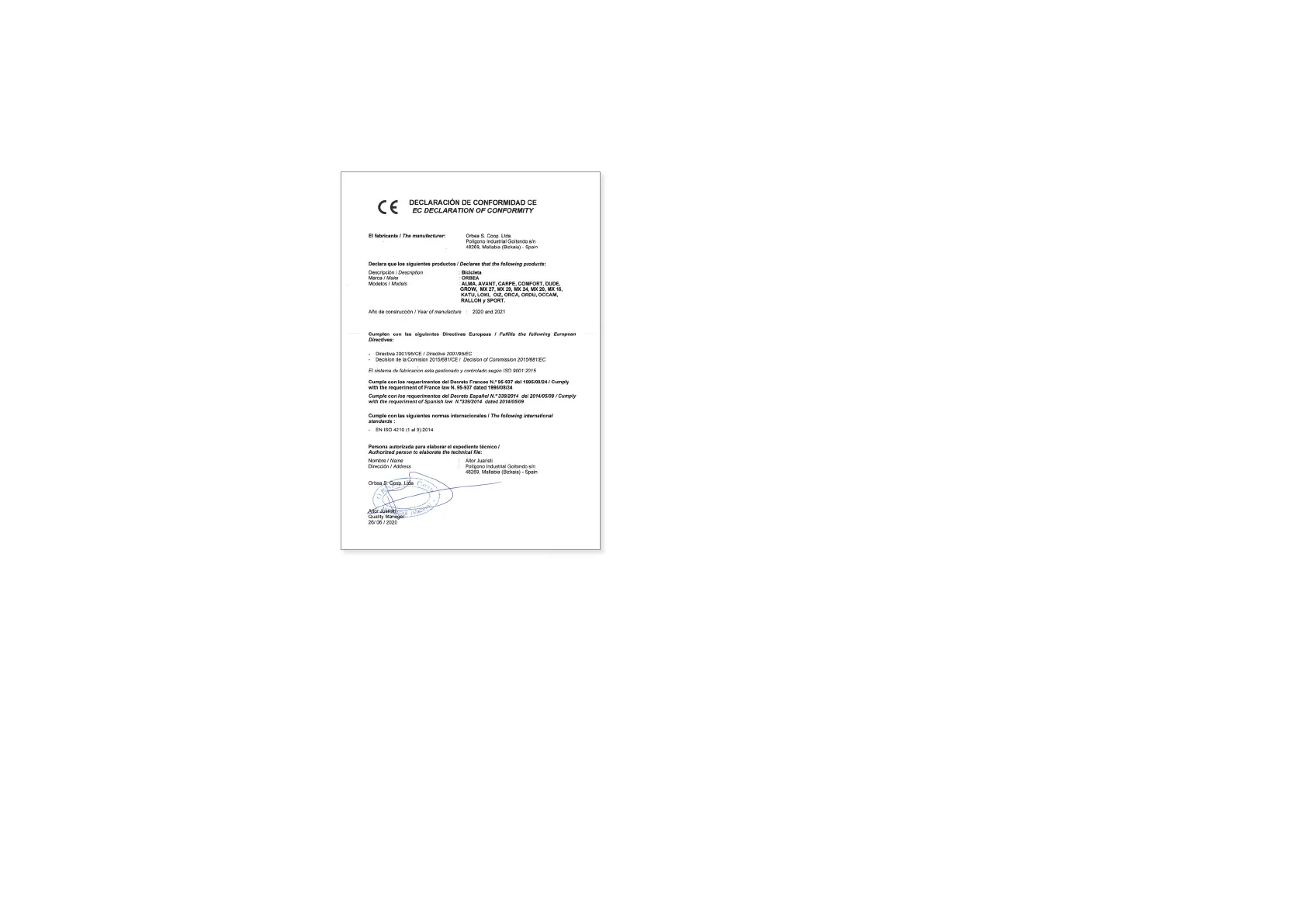 Access Orbea´s contact details and form at:
