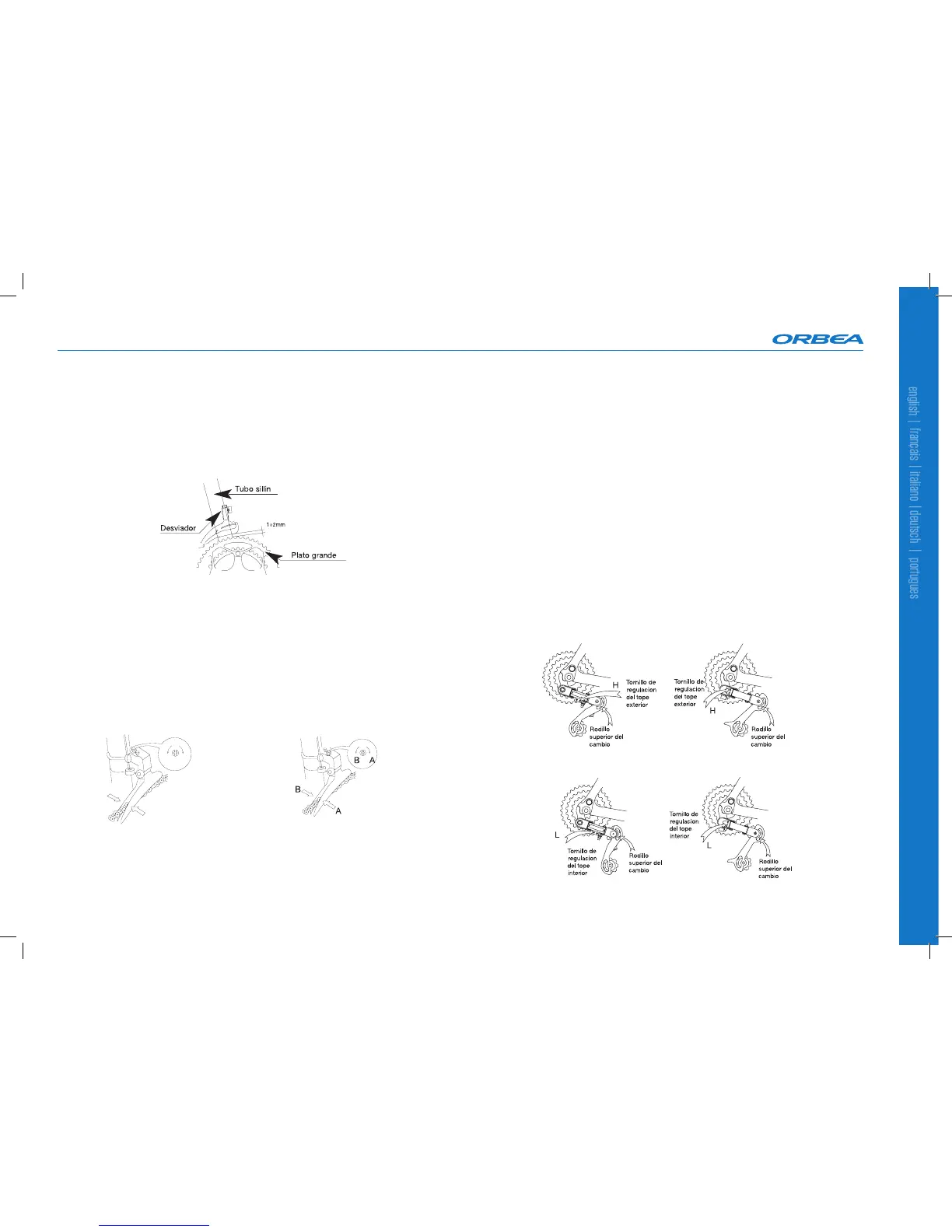 - Actúe sobre el tornillo regulación del tope exterior (H), de manera que pedaleando sobre la