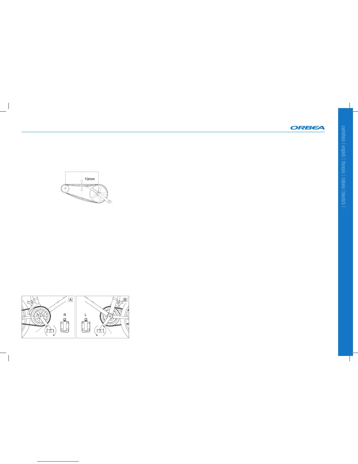 tensão da corrente de forma que, a metade da distância entre o eixo da roda e o eixo do peda-