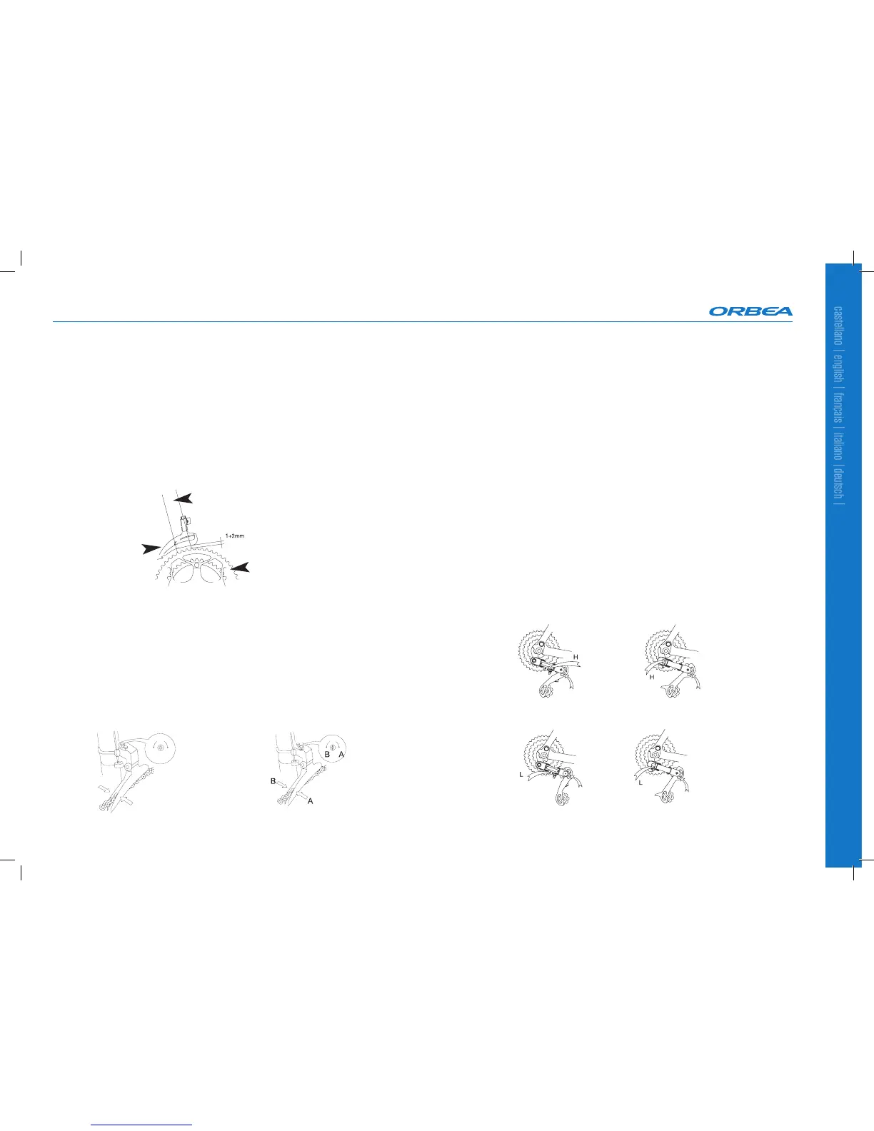 - Actue sobre o parafuso de regulação do limite interior (l), de forma que, ao pedalar sobre a