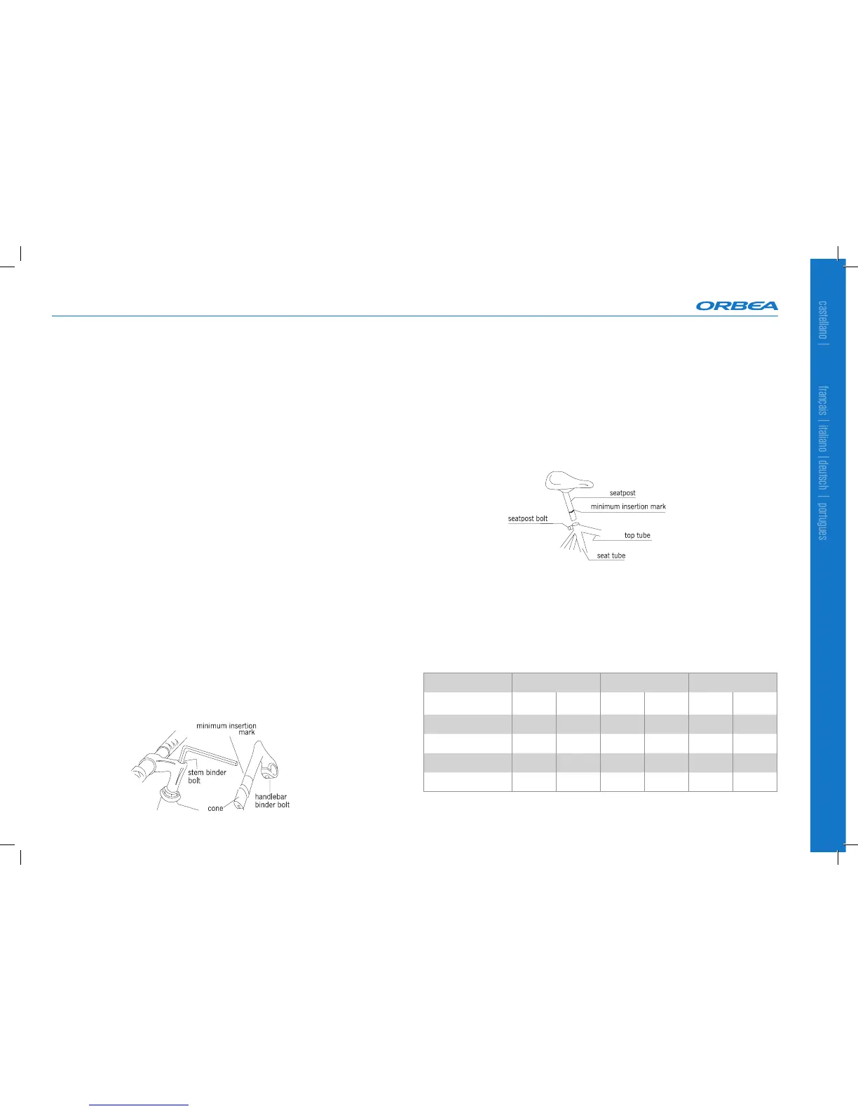 The handlebar position and angle depend on the user and his/her comfort, efciency and balan-
