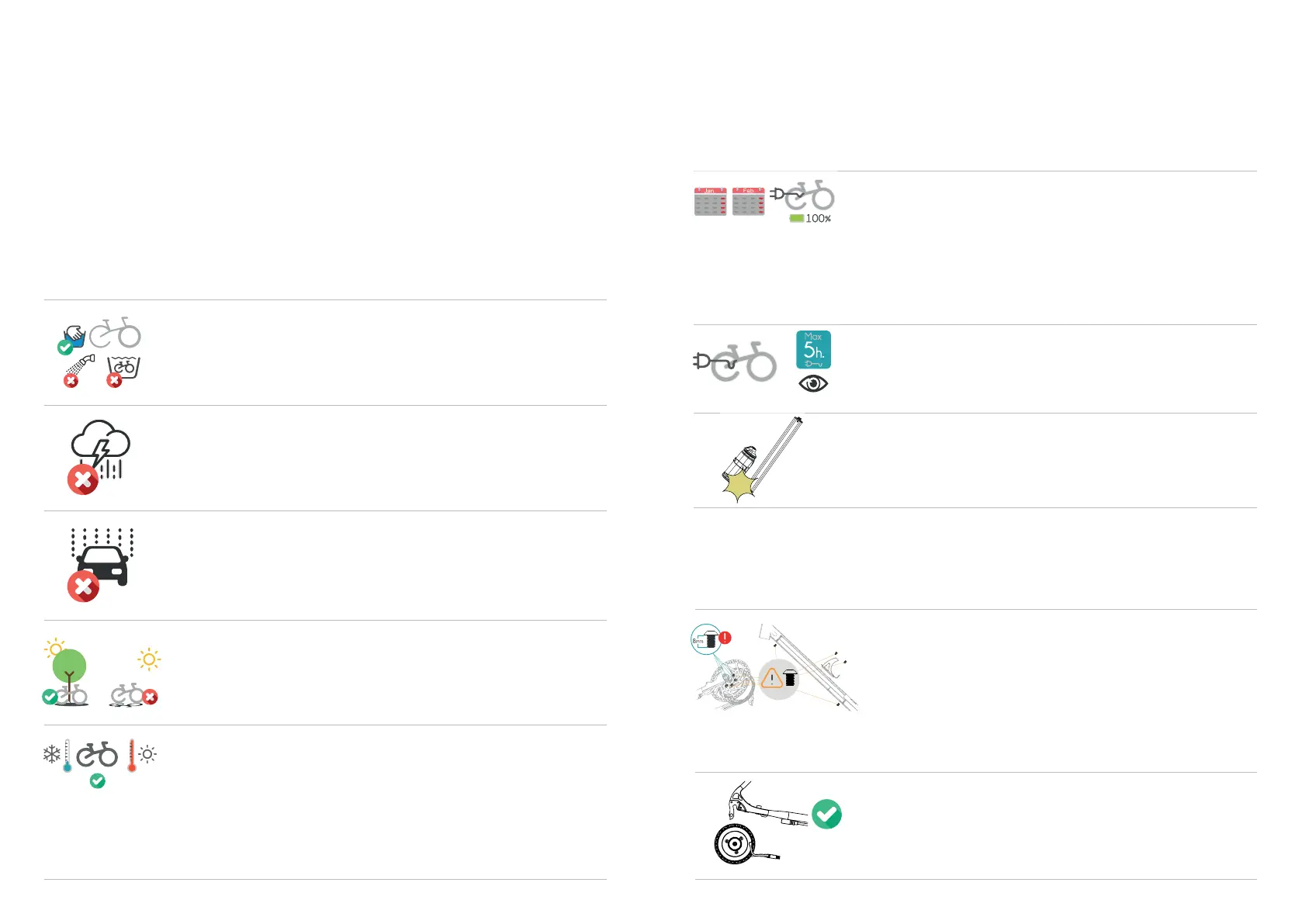 Evita usar tu bicicleta en condiciones meteorológicas muy adversas. Todos los compo-