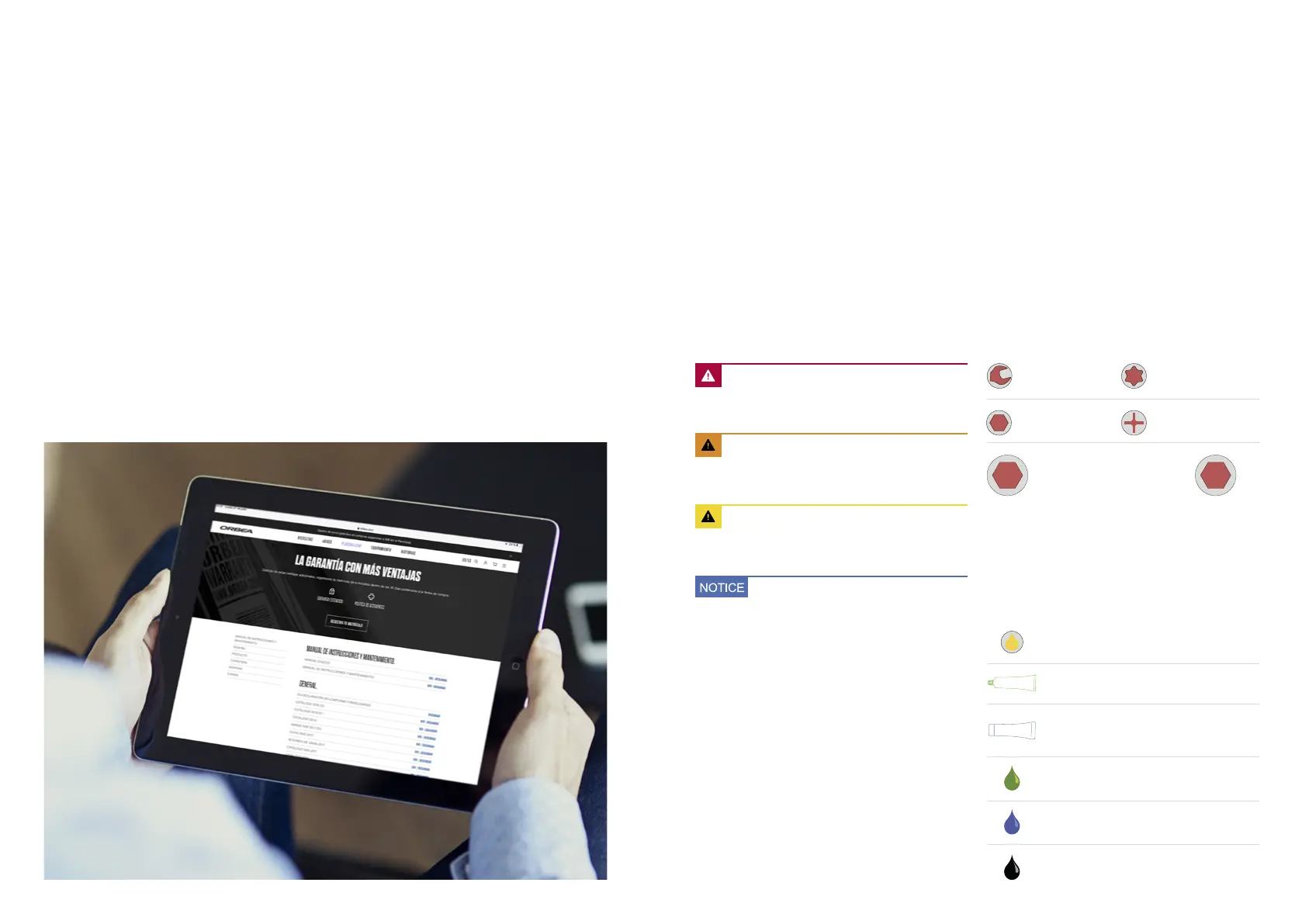 tructions and warnings for use, maintenance and assembly. Pay attention to