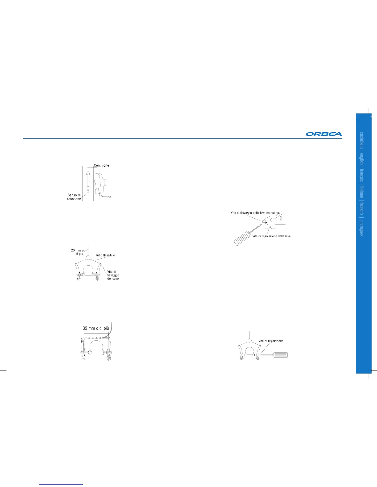 - Assicurarsi che i cavi non si allentino, i pattini siano in posizione corretta rispetto al cerchione