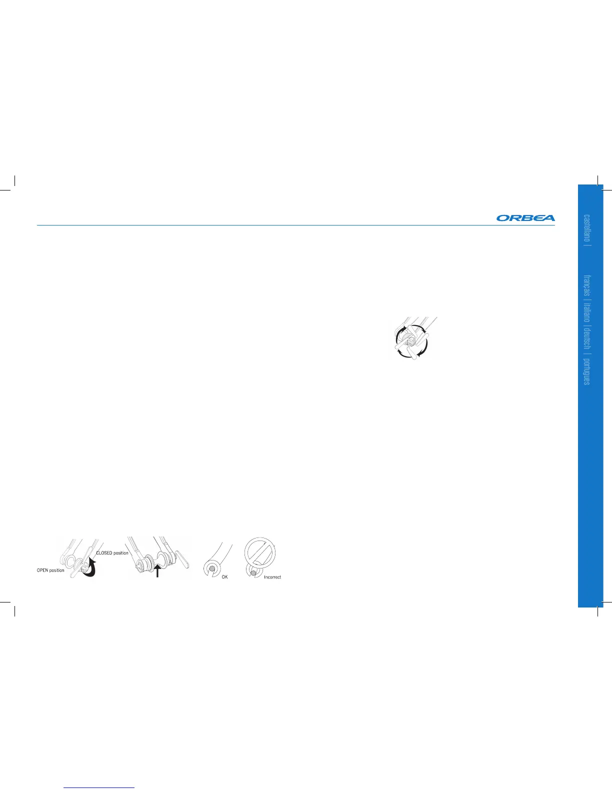 - The quick-release should be oriented in such a way that it does not interfere with other bike
