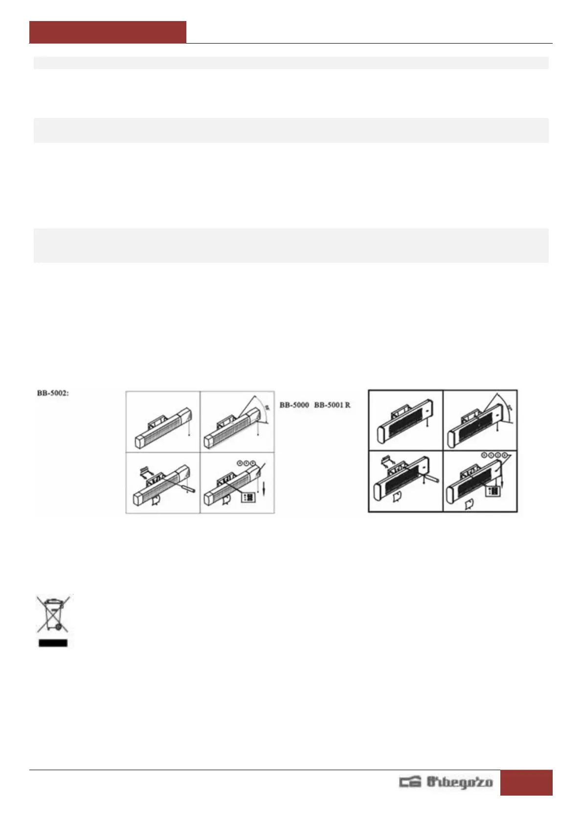 Mod. BB-5001 R 0 = Arrêt; 1 = 500 W; 2 = 1000 W; 3 = 1500W