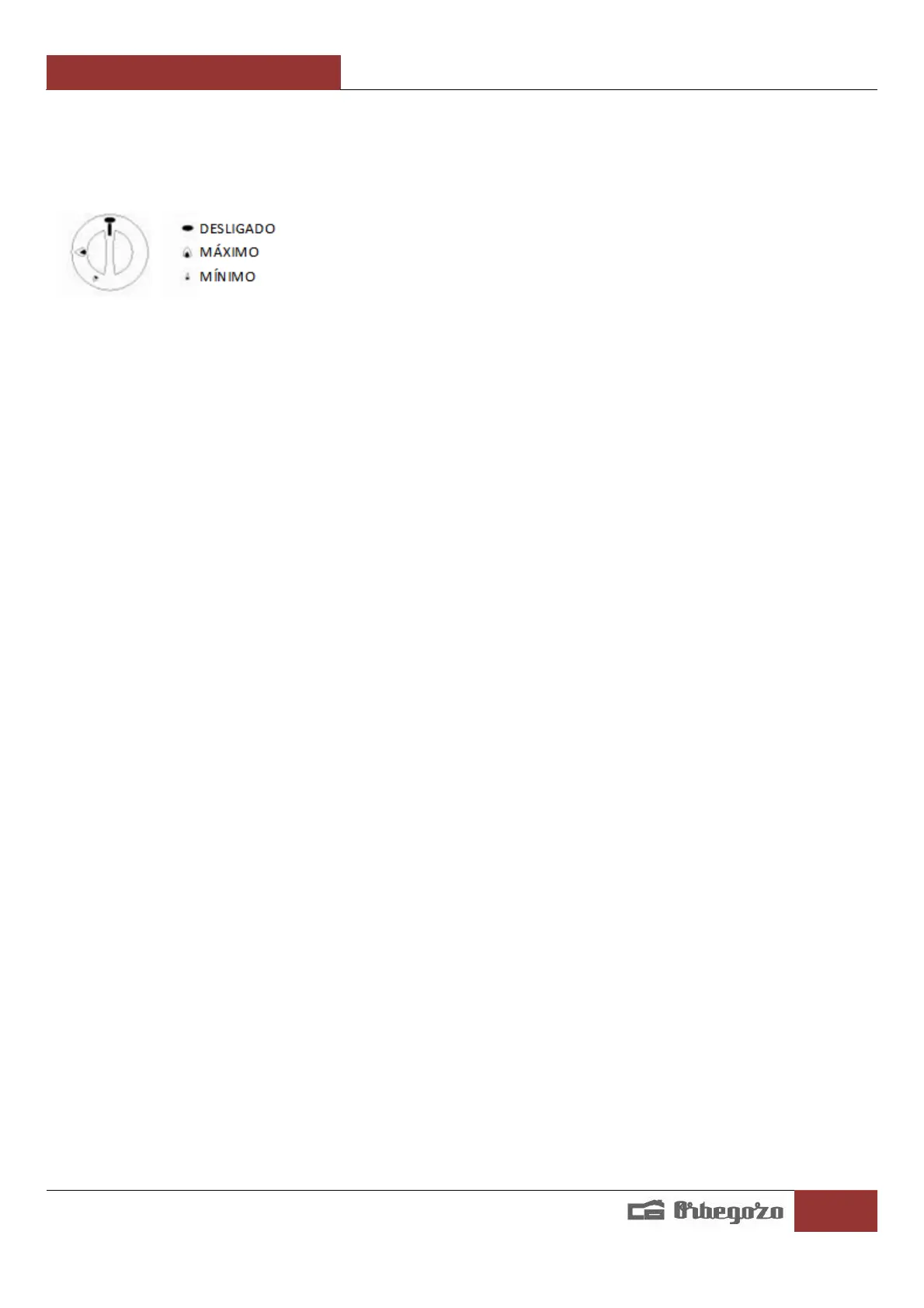 A chama pode ser regulada. O pulsador apresenta os seguintes símbolos: