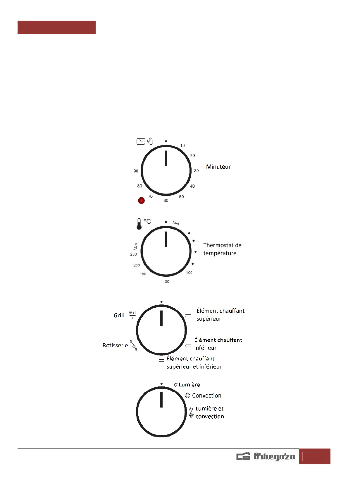 - L'interrupteur vous permettra d'allumer la lumière et / ou de connecter la convection.