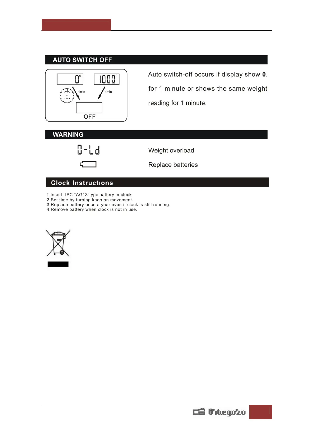 The crossed out “wheeled bin” symbol on the product reminds you of your obligation, that