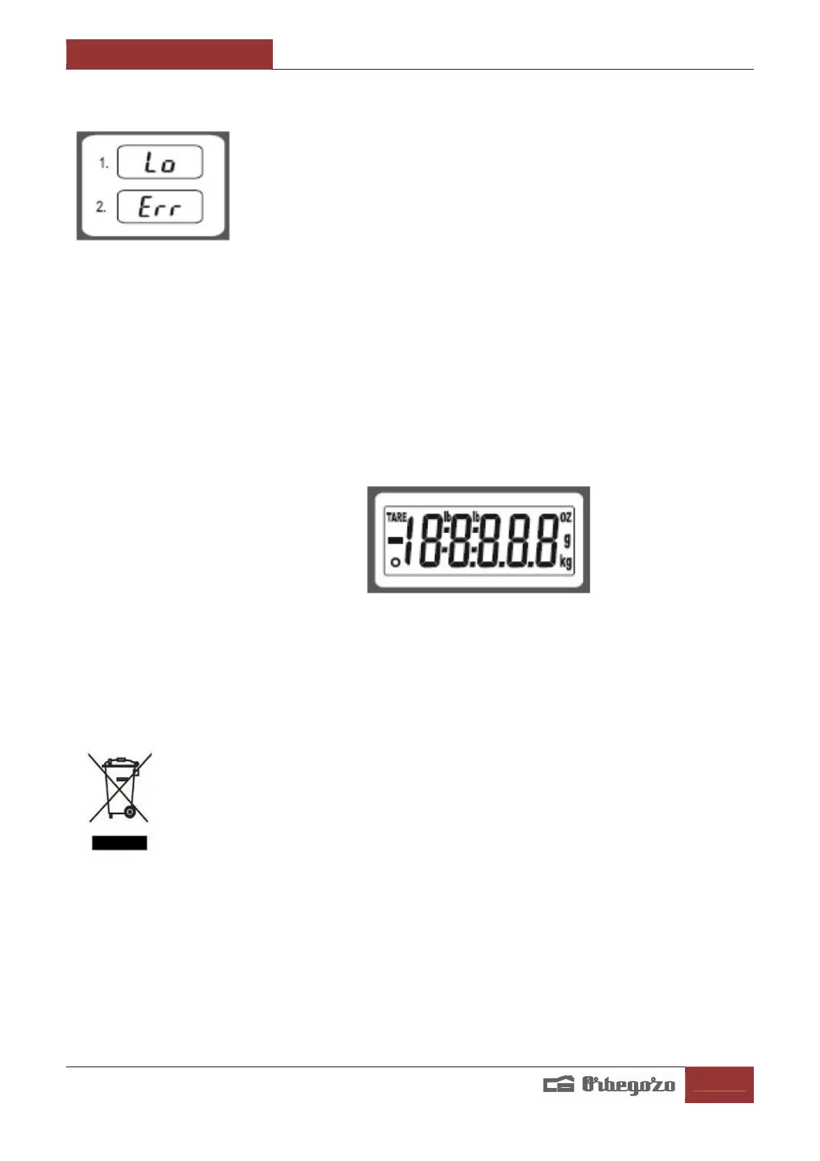 2. Sobrecarga del peso. Retire el producto para evitar daños en el peso. La capacidad máxima