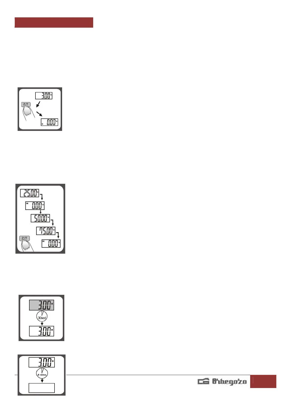 LCD shows "0.00g" each time Z/T is pressed. Icon "TARE" will appear on the upper