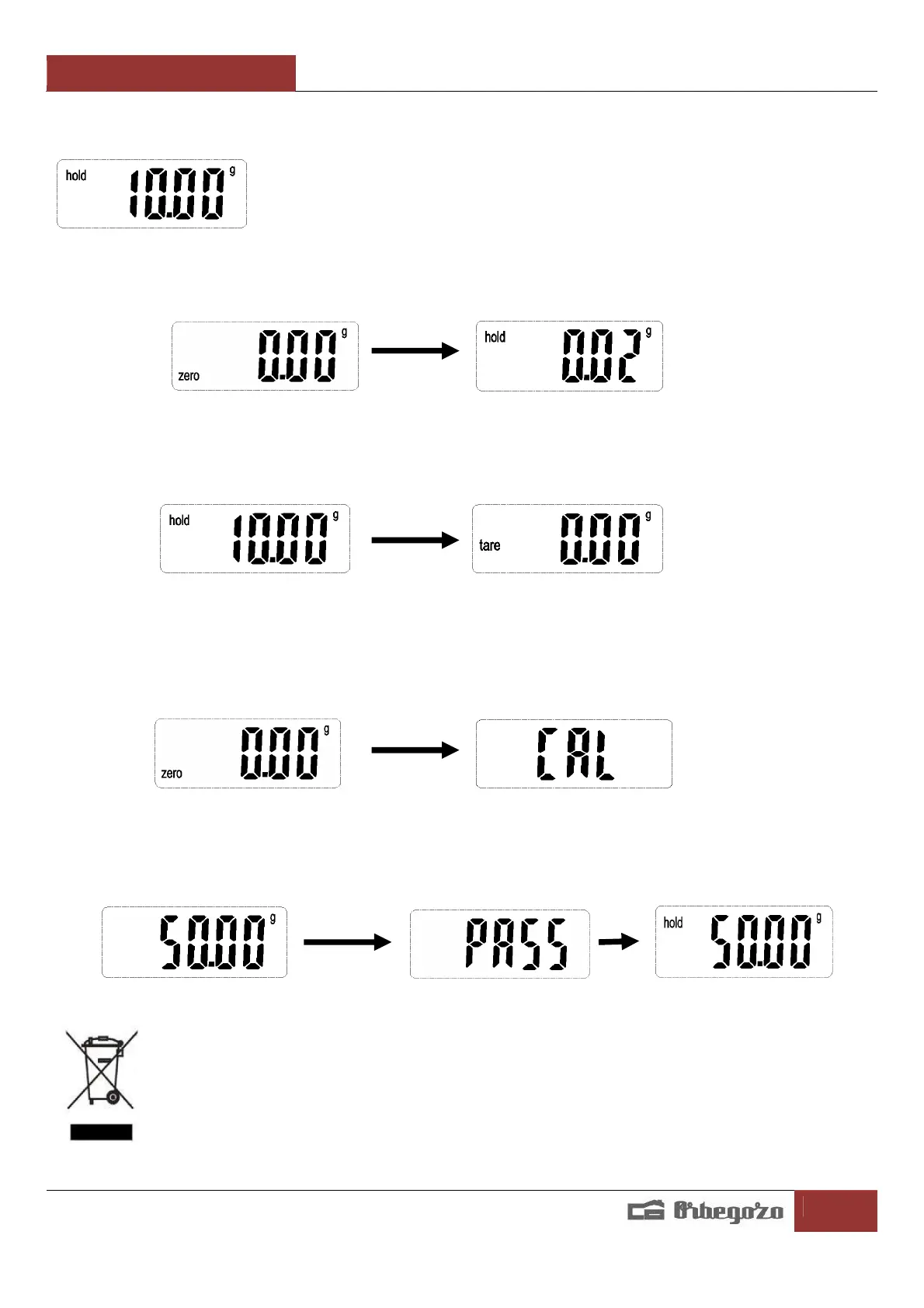 correcta, la pantalla LCD mostrará "PASS". De lo contrario, parpadeará "50,00 g" todo el tiempo.