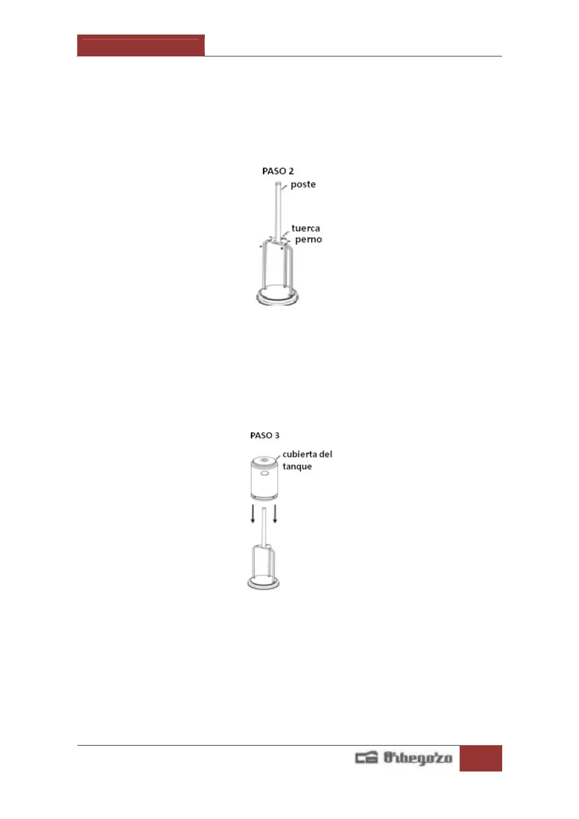 3.1. Introduzca la carcasa para el depósito en el poste.