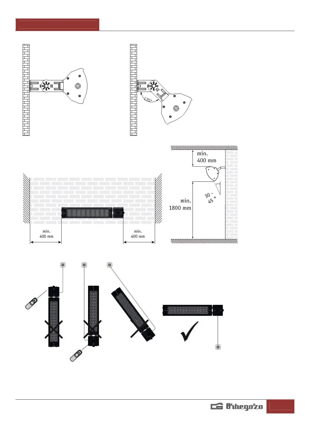 Le radiateur doit être installé à au moins 1,8 m du sol.
