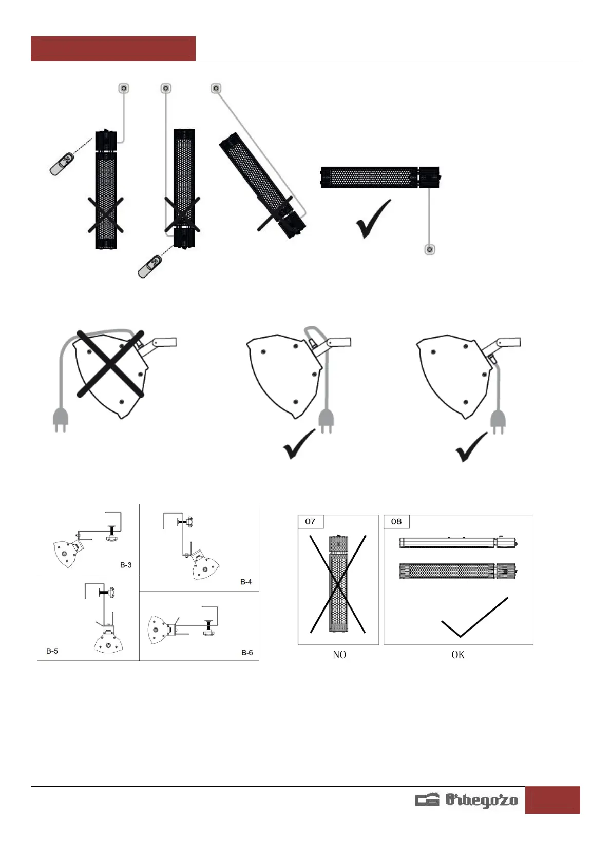 Coloque o aquecedor sempre na posição horizontal, nunca inclinado.
