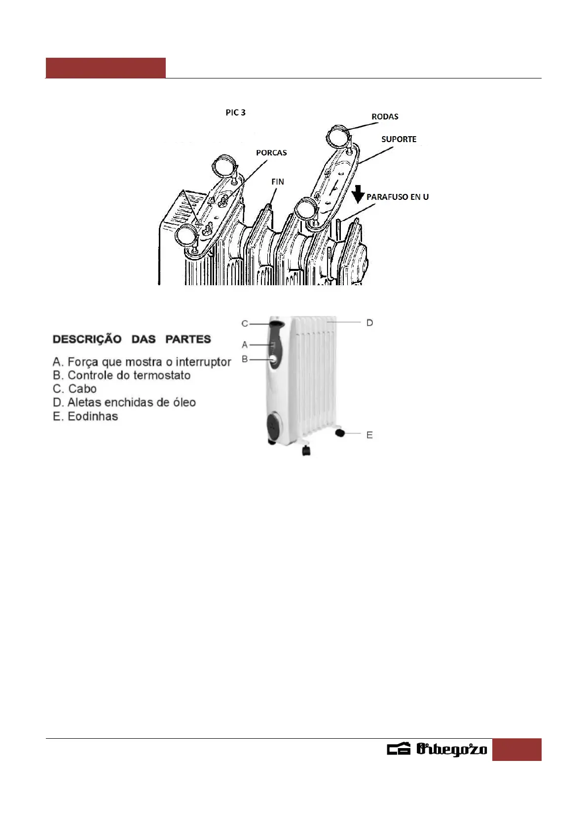 Nota:esteradiador é cheiode óleo,eesfriar-se-á lentamentedepoisqueaenergiafoicortada.Deixequeo