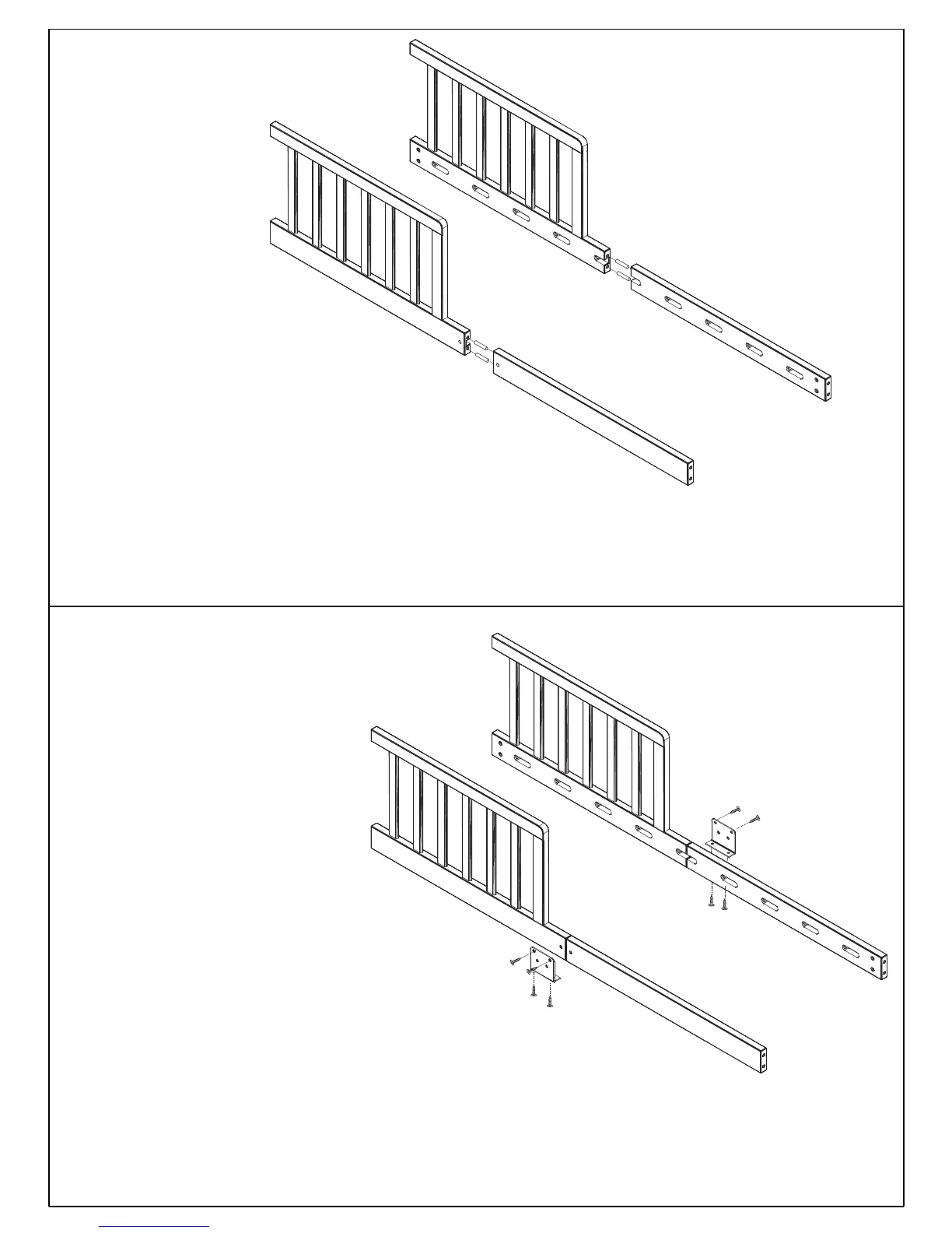 Connect the right rail (C) to the right rail (H) by wood dowels (d).