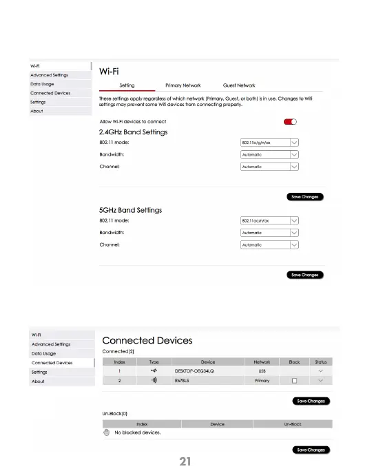 From this screen you can view settings of the Wi-Fi network for both the 2.4 and