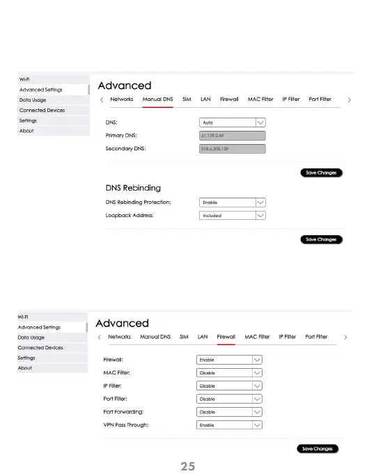 This screen lets you view and modify your DNS address and apply Filtering. Remember